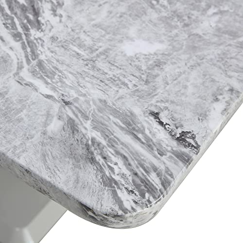 Specification: JUFU 63 Inch Modern Dining Table for 6, Scratch and Heat Resistant Faux Marble Rectangular Grey Tabletop, Easy Assembly Kitchen and Dining Room Table with Durable Frame