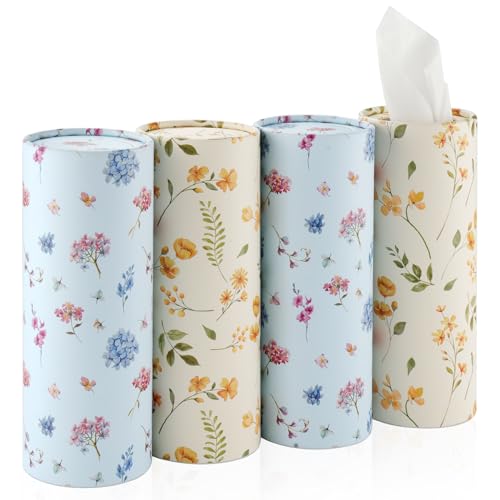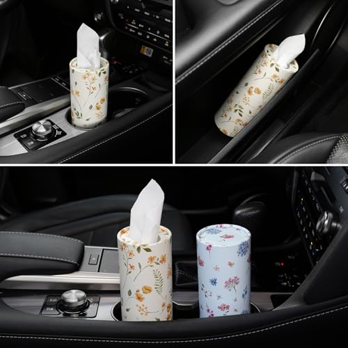 JUSTTOP Car Tissue Holder,Car Travel Kleenex Cup Holder with 4 Pack Facial Tissues,Convenient Tissue Bag,Car Accessories Interior for Women and Man 4 Canisters