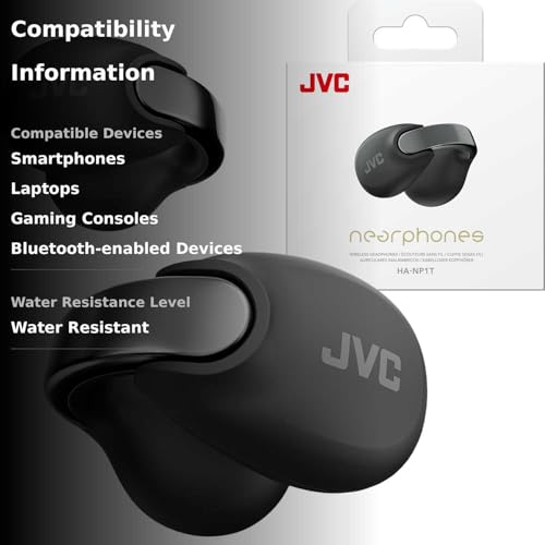 Specification: JVC Nearphones Open Ear True Wireless Headphones – Open Ear Earbuds – Bluetooth 5.3-24H Playback – IPX4 Water Resistant – Built-in Mic – Awareness & Comfort – Ear Clip Earbuds – HANP1T