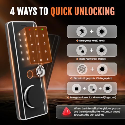 Quick Access Gun Safe: Emergency Key + Biometric Fingerprint + Digital Keypad. Utilizing advanced biometric fingerprint scanning technology (capable of storing 30 fingerprints) and a backup digital keypad, this safe ensures fast and reliable access. It guarantees that only authorized users can open the safe, effectively preventing children, intruders, and unauthorized individuals from accessing firearms.