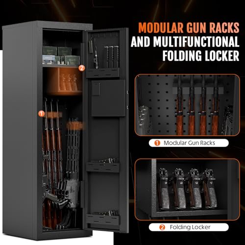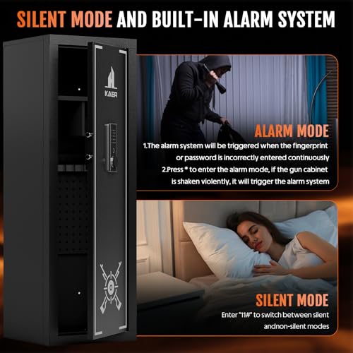 Specification: KAER Biometric Gun Safe Rifle,Gun Safes for Rifles and Pistols Holds 14-15 Firearms with Adjustable Racks & Pistol Storage,Fingerprint Keypad Lock Gun Cabinet for Home Home & Hunting for Enthusiasts