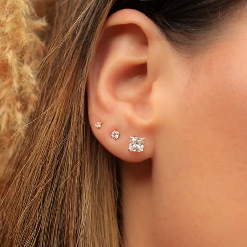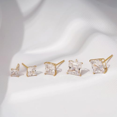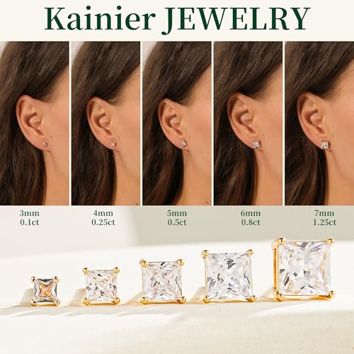 Specification: Kainier 5 Pairs CZ Stud Earrings Set Cubic Zirconia Ear Stud for Women Simulated Princess Cut Square Diamond Hypoallergenic Earring 3-7mm