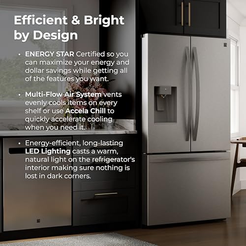 ENERGY STAR Certified + Even Cooling System: ENERGY STAR Certified to help reduce utility bills. Dual evaporators and a Multi-Flow Air System maintain optimal temperature and humidity throughout the fridge and freezer