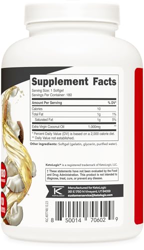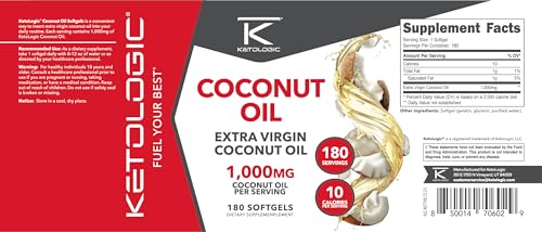 Specification: Ketologic Coconut Oil (180 softgels) (1,000MG Coconut Oil per Serving)