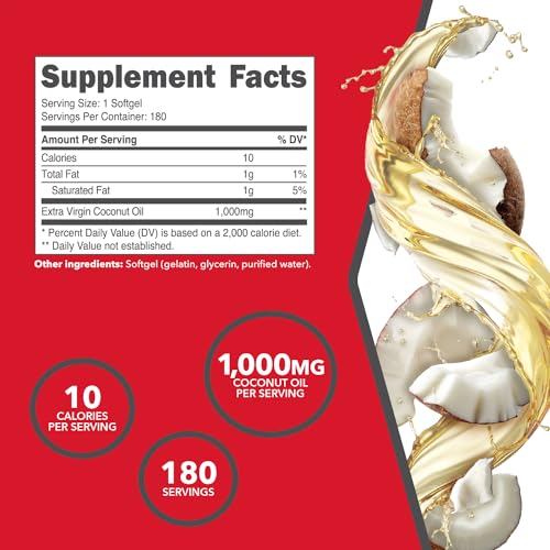 Ample Supply: With 180 softgels per bottle, you have a reliable and extensive source of coconut oil