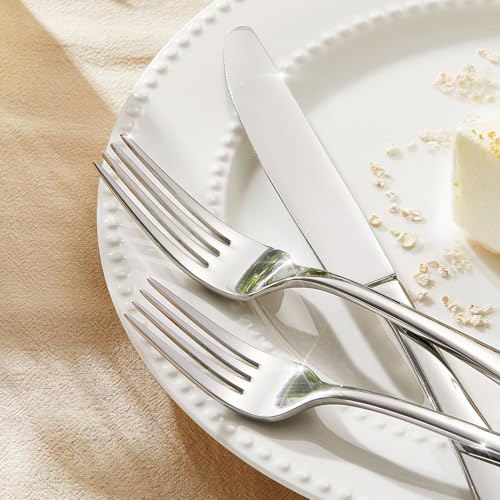 Modern Design & Mirror Polishing : The handle is designed in a slightly raised sand dune shape, show your unique and elegant taste. Multiple fine polishing gives the flatware set a smooth edges and bright surface, keep its silver-like shine over the years, easy to clean by hand and also dishwasher safe.