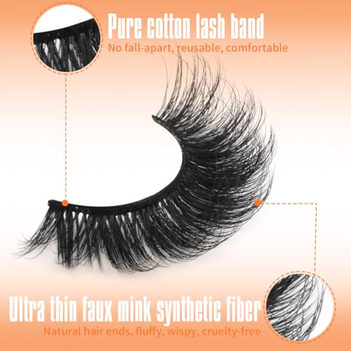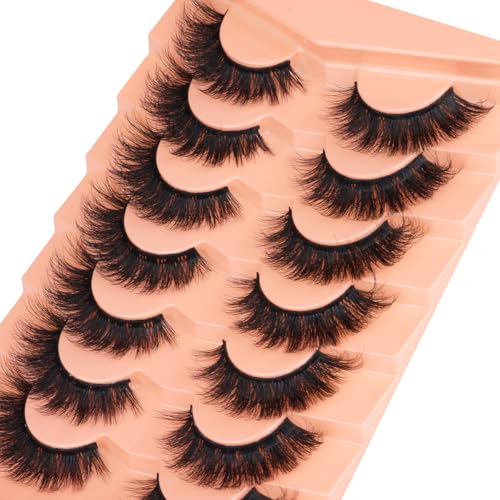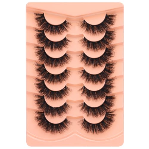 Kiromiro Mink Lashes False Eyelashes 18mm 3D Volume Cat Eye Lashes Faux Mink Eyelash Wispy Fake Eyelashes Thick Strips Lash Pack, 7 Pairs