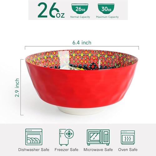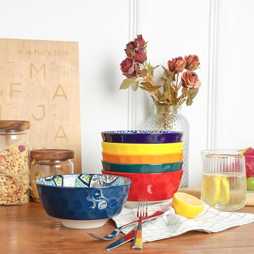 Specification: KitchenTour Cereal Bowls Set of 6, 26 oz Ceramic Soup Bowls for Kitchen, 6.3 Inch Colorful Serving Bowls for Oatmeal, Salad, Pasta, Dessert – Microwave & Dishwasher Safe