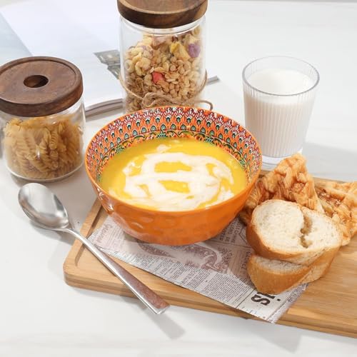 【VIBRANT COLORS DESIGN】Vibrant and bold colours combined with intricate patterns, each cereal bowl is meticulously crafted and is a masterpiece of bohemian design. These brilliantly colourful soup bowls creates a captivating visual feast that transports you to a world of Bohemian charm every time you sit down to dine.