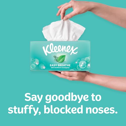 Stuffy, blocked, bunged up noses are never fun. So say hello to Kleenex Easy Breathe, made with natural eucalyptus and menthol. Grab Kleenex!