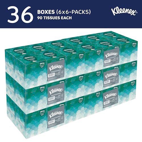 90 Tissues/Box; 36 Boxes/Case (6 Bundles of 6 Boxes); Kleenex Professional Facial Tissue; 3,240 Tissues/Case; 2-Ply; White; Upright Facial Tissue Cube Boxes for Business