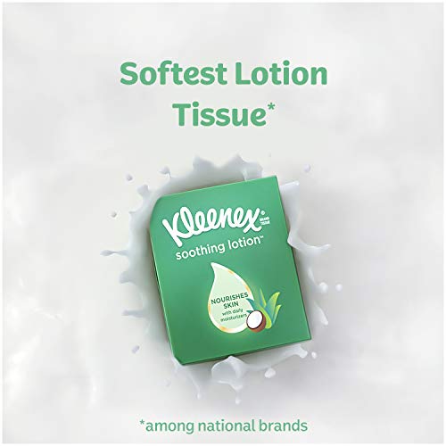 Specification: Kleenex Soothing Lotion Facial Tissues, 1 Cube Box, 65 Tissues Per Box, Coconut Oil, Aloe & Vitamin E
