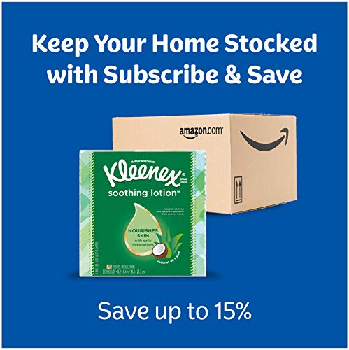 Kleenex Soothing Lotion Facial Tissues feature 3-ply tissue layers infused with skin-loving ingredients of coconut oil, aloe vera and vitamin E. Clinically-proven to be the softest lotion tissue (among national brands), Soothing Lotion tissues help prevent redness during allergies, colds and everyday use. Kleenex Lotion tissues nourish skin with daily moisturizers and lock in the skin’s natural moisture. Dermatologist tested to soothe noses better vs. the leading lotion brand. Kleenex Tissue Boxes are available in a variety of colors, designs, and sizes to complement your home decor. Actual package designs may vary from image shown. Pamper yourself with indulgent lotion softness and dependable strength. Buy Kleenex facial tissues in bulk & save! Keep Kleenex Soothing Lotion tissues on hand to care for you, your family and your guests during cold & flu, allergy, or back to school seasons. And for a gentle clean with no harsh chemicals, check out Kleenex Wet Wipes in Gentle, Germ Removal, & Sensitive.