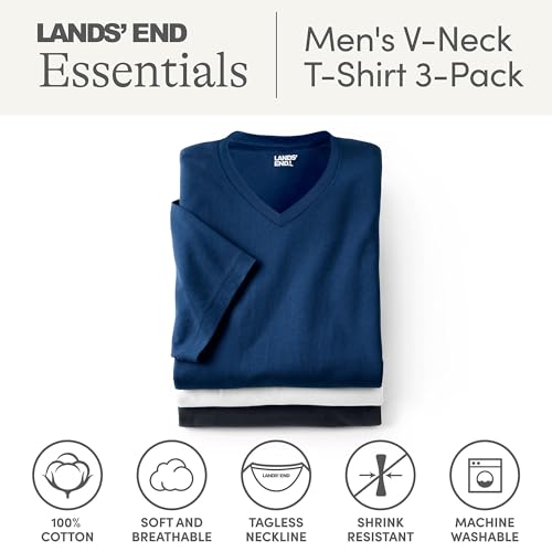 Specification: Lands’ End Essentials Men’s V-Neck T-Shirt 3 Pack – Premium Cotton Tee, Casual Regular Fit