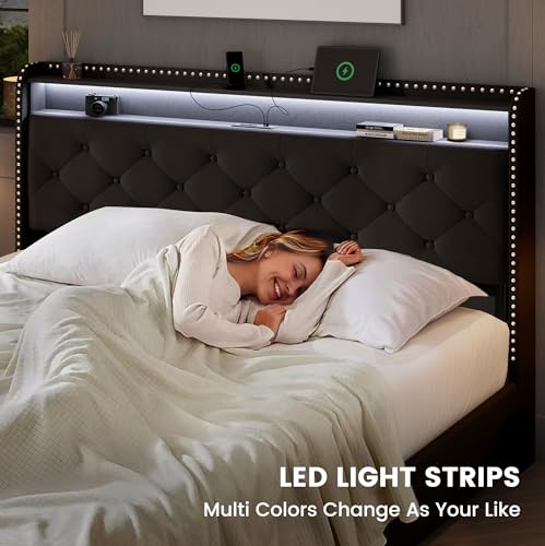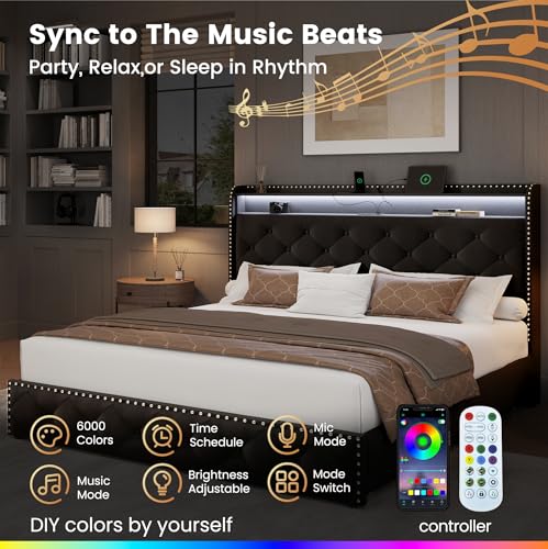 Specification: LARMACE Queen Size Bed Frame with Storage & LED Lights & USB Type-C Charging Station,Velvet Upholstered Platform Bed with Headboard and 4 Drawers, No Box Spring Needed, Easy Assembly, Black