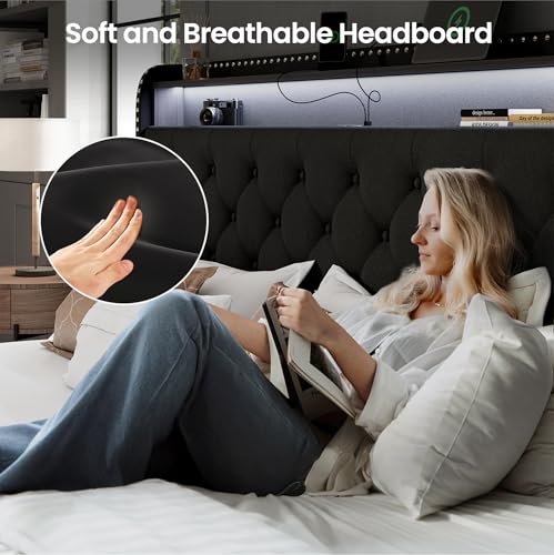 [Sleek Led lighting]: The tufted bed frame builds LED lights in the headboard. Then it could creat a relaxing and ambient atmosphere in your bedroom