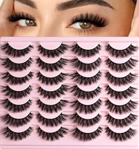 Lashes Wispy False Eyelashes Cat Eye Lash Strips Natural Look Fake Mink Eyelash Pack 14 Pairs Lightweight Fluffy Cateye Lashes Soft Cotton Band 6-13mm Wispies Full Easy Eyelashes for Women