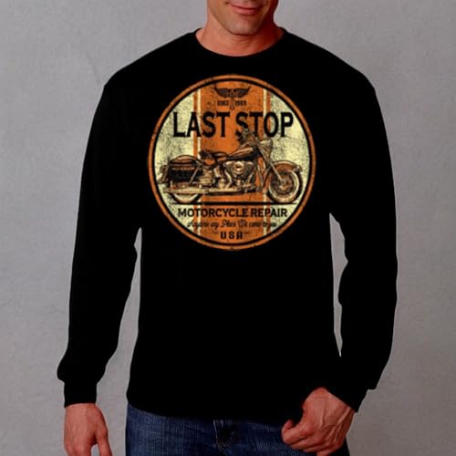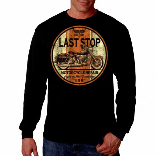 Specification: Last Stop Motorcycle Shirt Biker Rider Route 66 Harley Vintage Mens Long Sleeve Tee