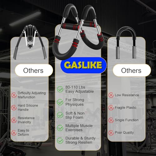 【HIGH-QUALITY MATERIAL & ERGONOMIC COMFORT DESIGN】GASLIKE Twister Arm Trainer is designed with your safety and comfort in mind, each spring workout bar is wrapped with a durable leather cover, which not only offers solid stability and reliable resistance, but also ensures a comfortable grip, preventing hand fatigue and discomfort during your workouts. Moreover, the thickened anti-slip foam extends the service life of the spring, avoids rust, and brings you a more reliable exercise experience