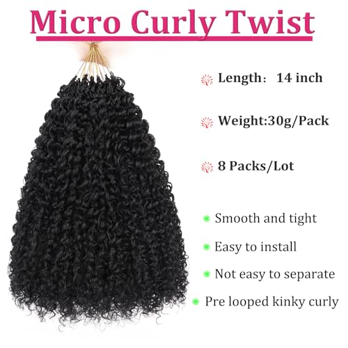 Specification: Leeven Pre Looped Micro Kinky Curly crochet Hair 14 Inch 8 Packs Black Micro Curly Braiding Hair For Mini Passion Twist (1B#)
