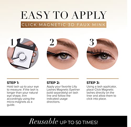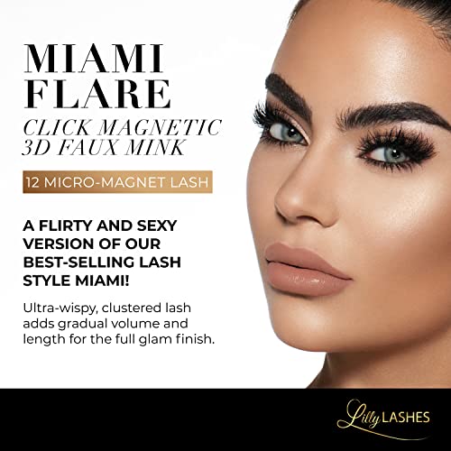 Lilly Lashes Click Magnetic Eyelashes – Miami Flare Magnetic Faux Mink Lashes for a Natural Look – False, Wispy Magnet Eyelashes – Vegan Makeup Lash Extension – Magnetic Eyelashes Without Eyeliner