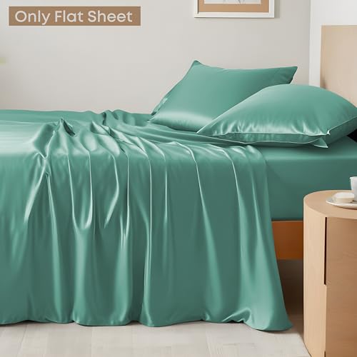 LINENWALAS Flat Sheet Only, Austrian Tencel Lyocell Silk Bedding, 300 Thread Count Premium Soft Cooling Eucalyptus Top Sheet (Aqua, Queen)