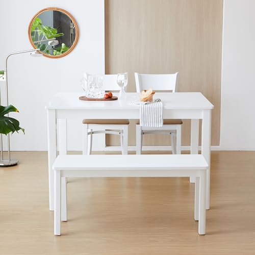 Livinia Cabin 45.3″ Wooden Dining Table/Small Rectangular Modern Farmhouse Solid Wood Kitchen Table Desk (White)