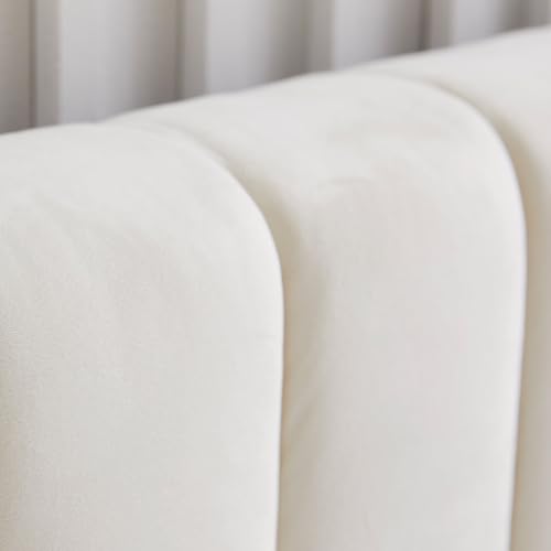 Livinia Queen Size Elton Velvet Platform Bed, Upholstered Bed Frame with Vertical Channel Tufted Headboard Footboard, Strong Wood Slats, No Box Spring Needed, Ivory (Queen)