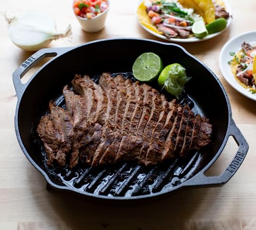 Lodge 12 inch Cast Iron Dual Handle Grill Pan keeps grease off your dish for healthy cooking