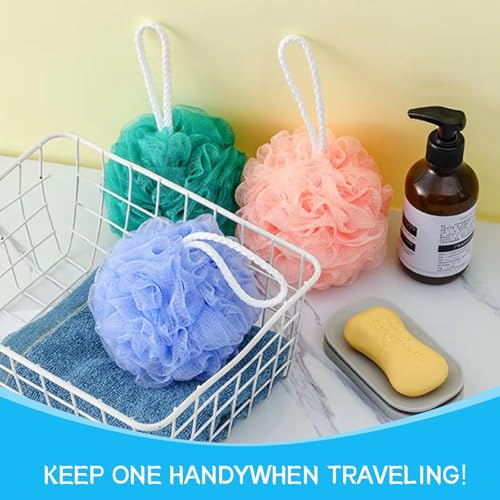 Specification: Loofah Sponge Shower Loofahs Bath Sponges Mesh Balls for Women Men Bathing Accessories Body Wash Back Scrubber 50g Soft Pouf Body Scrubber Loofahs Puff Pack, Exfoliate, Cleanse, Soothe Skin (4 Colors)