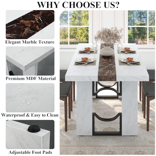 Specification: Loomie 71 Inch Dining Table for 6-8 People, Large Rectangular Kitchen Table with Marble-Color Tabletop, 6ft Luxurious Dining Room Table for Living Room, Home Office (White Marble)
