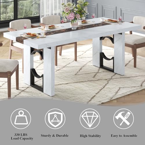 Loomie 71 Inch Dining Table for 6-8 People, Large Rectangular Kitchen Table with Marble-Color Tabletop, 6ft Luxurious Dining Room Table for Living Room, Home Office (White Marble)