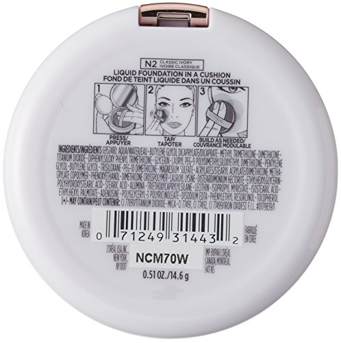 Specification: L’Oréal Paris True Match Lumi Cushion Foundation, N2 Classic Ivory, 0.51 oz.