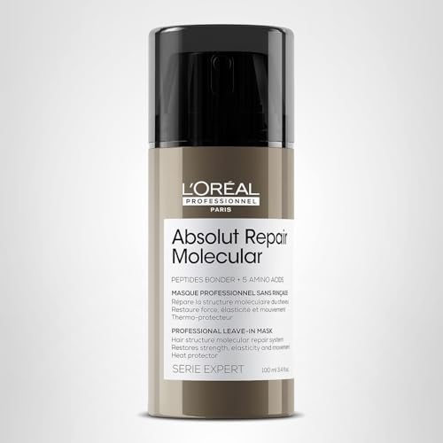 L’Oréal Professionnel Paris Absolut Repair Molecular Leave In Mask – Smooths and Strengthens Hair For All Damaged Hair Types, Protects from Heat