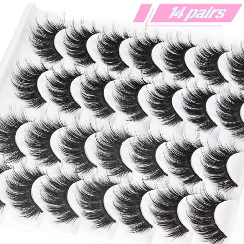 Losha Eyelashes Natural Look Faux Mink Lashes Pack Handmade Fluffy False Eyelashes 14 Pairs Eye Lashes (815)