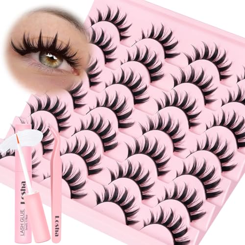 Losha Lashes Spiky Manga Lashes 14 Pairs Anime False Eyelashes 8D Wispy Eye Lashes Kit with Lash Glue and Lash Tweezers Natural Soft Fake Eyelashes (Cutes)