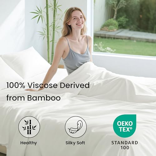 Specification: Love’s cabin 4 Piece Full Size Sheet Set, Cooling Sheets, 100% Rayon Derived from Bamboo, Breathable & Soft Full Size Bed Set, Deep Pocket Up to 16″, Hotel Luxury Silky Bedding Sheets, White
