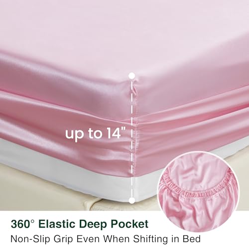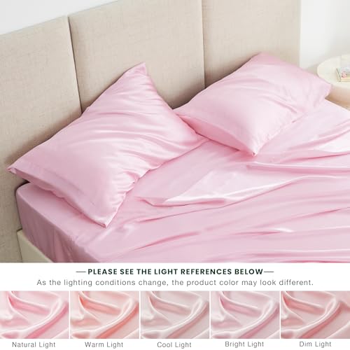 Love’s cabin Satin Queen Sheets Set – 4 Piece Pink Silky Bed Sheets Set with Deep Pocket, Luxury Silk Feel Satin Queen Size Sheet Set (1 Flat Sheet,1 Fitted Sheet,2 Pillow Cases)