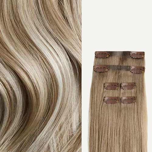 Luxy 100% Remy Human Hair Extensions for Thin Hair Thinning Hair Fill-Ins – 6 Seamless Wefts Multi-Dimensional Color Blend – Natural-Looking Volume & Coverage 50 grams 12″ Natural Blonde Balayage