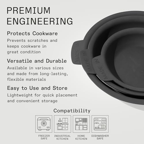 Specification: Made In Cookware – 3 Piece Set (Includes 8″,10″,12″) Frying Pan Protectors – Graphite – Molded Silicone – Dishwasher Safe
