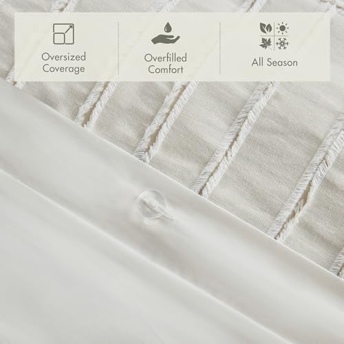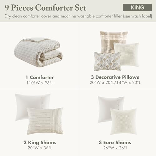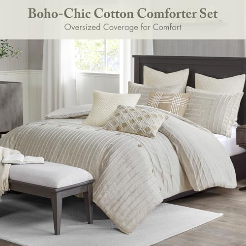 Specification: Madison Park King Comforter Set Clipped Jacquard Stripes with Buttons Boho Comforter for a King-Size Bed, Cotton Oversized Comforters with Removable Cover Boho Bedding, King Ivory 9 Piece