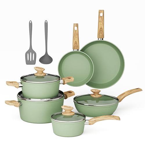 MAISON ARTS Pots and Pans Set Non Stick, 12 Piece Green Granite Kitchen Cookware Induction Compatible, Pot and Pan Sets for Cooking Nonstick
