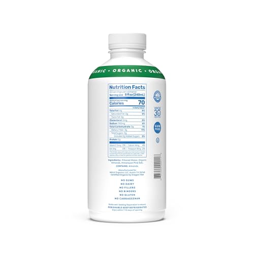 Specification: Malk Organic Unsweetened Almond Milk – 28 fl oz – Non GMO, Whole 30 approved, Dairy Free, Vegan, Plant Based