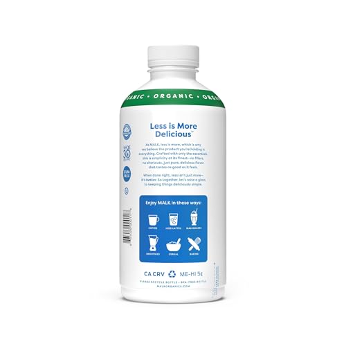 Malk Organic Unsweetened Almond Milk – 28 fl oz – Non GMO, Whole 30 approved, Dairy Free, Vegan, Plant Based