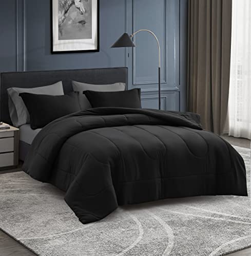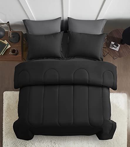 Maple&Stone Full Size Comforter Set 7 Pieces Bed in a Bag – Down Alternative Bed Set with Sheets, Pillowcases & Shams, Soft Reversible Duvet Insert,Black