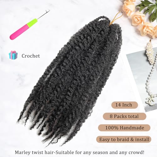 Marley Twist Braiding Hair 14 inch Afro Kinky Curly Crochet Braids 8 Packs Cuban Twist Crochet Braids Synthetic Low Maintenance Skin-Friendly Marley Hair Extensions(1B, Packs of 8)
