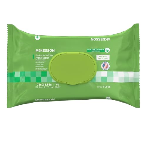 Specification: McKesson Flushable* Adult Wet Wipes – 96 Wipes (1 Pack of 96) – Aloe & Vitamin E, Plant-Based Cleansing Wipes, Scented