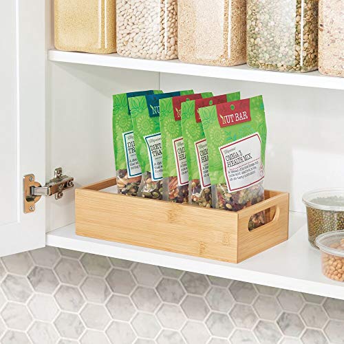 mDesign Bamboo Kitchen Storage Container Bin – Drawer Organizer Crate Box with Handles for Pantry Cabinet, Shelves, or Countertop, Holds Snacks, Spices, or Drinks, Echo Collection, Natural/Tan