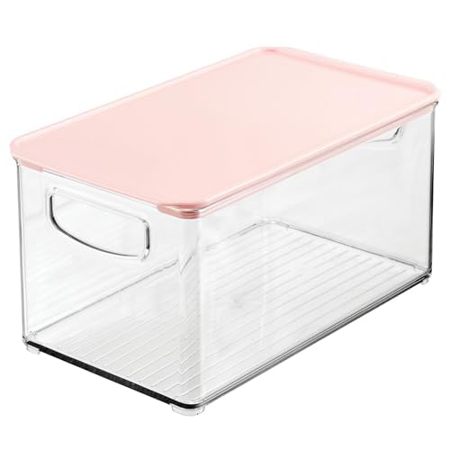 Specification: mDesign Deep Plastic Bathroom Storage Bin Box, Lid/Built-in Handles, Organization for Makeup, Hair Styling Tools, Toiletry Accessories in Cabinet, Shelves, Ligne Collection, 2 Pack, Clear/Pink