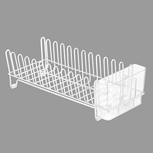 Specification: mDesign Kitchen Sink Dish Drainer – Small Metal and Plastic Dish Rack for Kitchen Sink – Dish Drying Rack with Drip Tray for Plates and Cutlery Basket – White/Clear